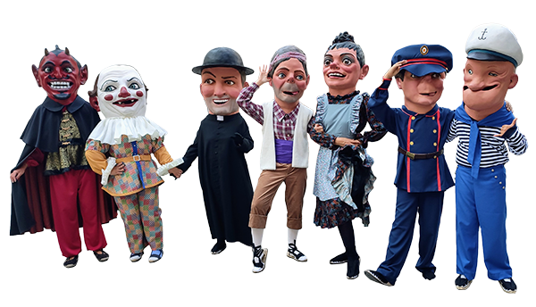 Juntament amb els gegants Ripal i Brunel·la, l’escultor badaloní Jordi Liñán va fer aquesta comparsa de 9 capgrossos: el Sàtir, la Negrita, el Noble, la Senyoreta, la Rínxols, la Vella, el Mosso d’Esquadra, el Catalanet i el Nano. El Ball de Gegants i Capgrossos de Badalona s’estrenà justament amb tots ells.